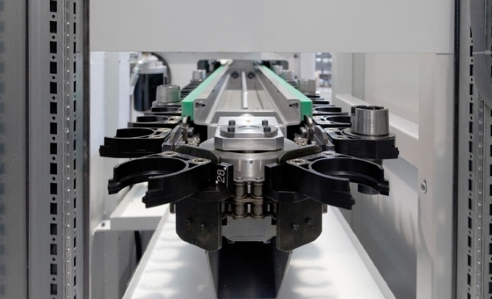 Structura centrului se bazează pe soluţiile experimentate anterior şi testate prim metoda elementului finit (FEM). Este prevăzut cu electromandrină de înaltă frecvenţă cu control vectorial, magazie de scule pe lanţ, poziţionată pe partea stângă şi prevăzută cu un număr de 30 sau 54 de posturi. Această poziţionare prmite o accesibilitate uşoară şi schimbarea rapidă a sculelor, fără a interfera cu câmpul de lucru.